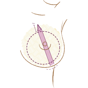 Preservé™では、従来の豊胸手術と比べて、手術時間が短いことが特徴です。局所麻酔を用い軽い鎮静下において、もしくて(必要に応じて)全身麻酔にて行います。