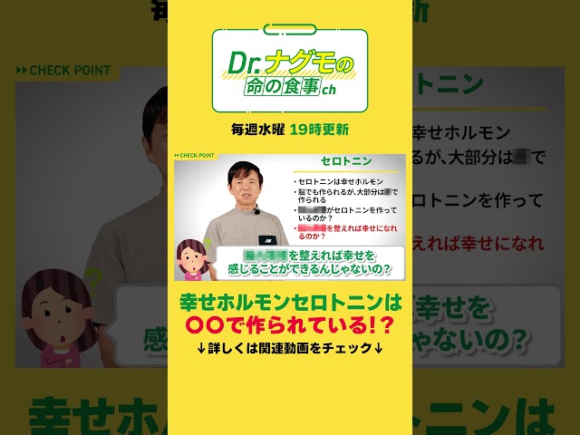 【幸せホルモン】脳ではほとんど作られない!? セロトニンが〇〇で作られる理由とは?(メラトニン・自律神経・脳科学・健康・ナグモクリニック・予防医療)
